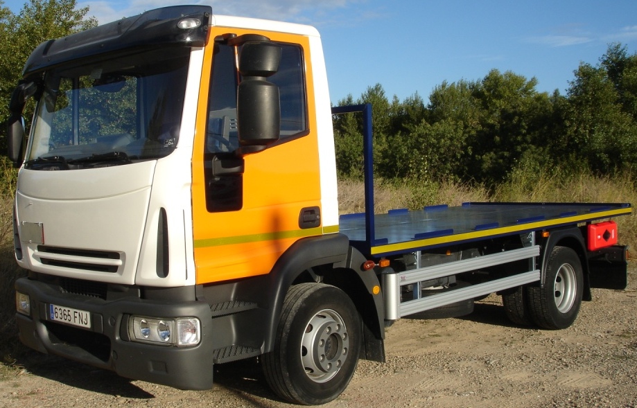 Entrega de un camión Iveco Eurocargo ML120E22 de 12t con carrocería tipo plataforma, especialmente fabricado para el transporte de jaulas de butano.