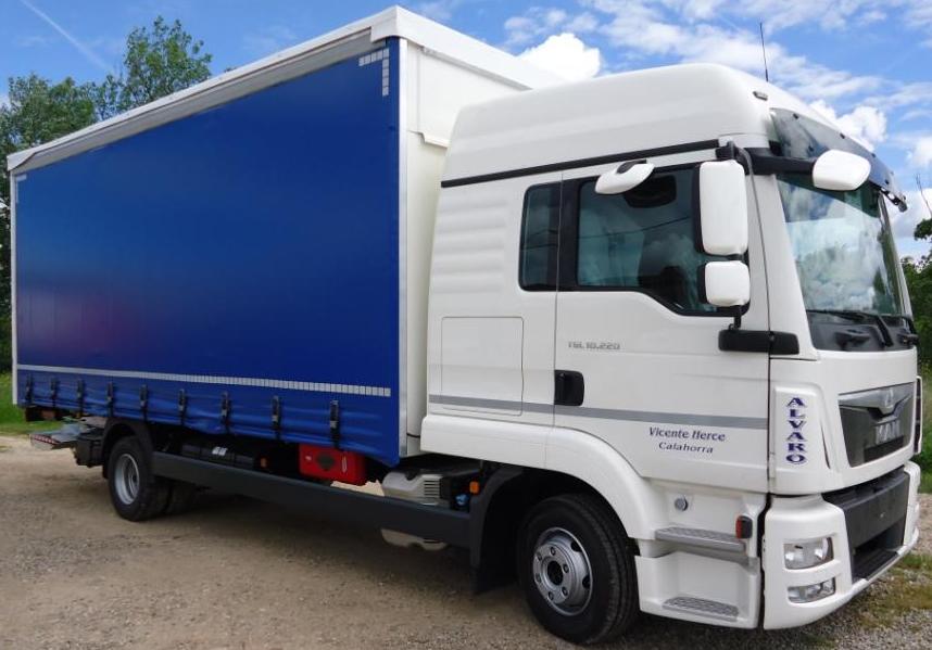 Entregamos un camión MAN TGL 10.220 4X2 BL de 10.5t dotado de carrocería tautliner y de plataforma elevadora trasera Dhollandia de 1000kg para la carga y descarga de los productos que habitualmente maneja nuestro cliente Vicente Herce.