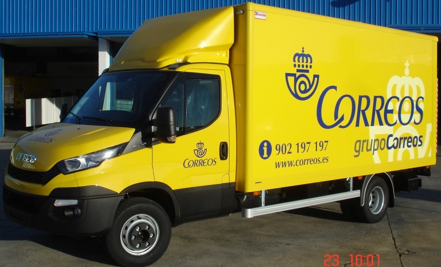 Hacemos entrega de varios carrozados sobre el recientemente lanzado al mercado Iveco Daily 6.5 toneladas con furgón cerrado y plataforma elevadora trasera Dhollandia de 1000kg de capacidad, especialmente desarrollados y fabricados para labores logísticas de la flota de Correos.