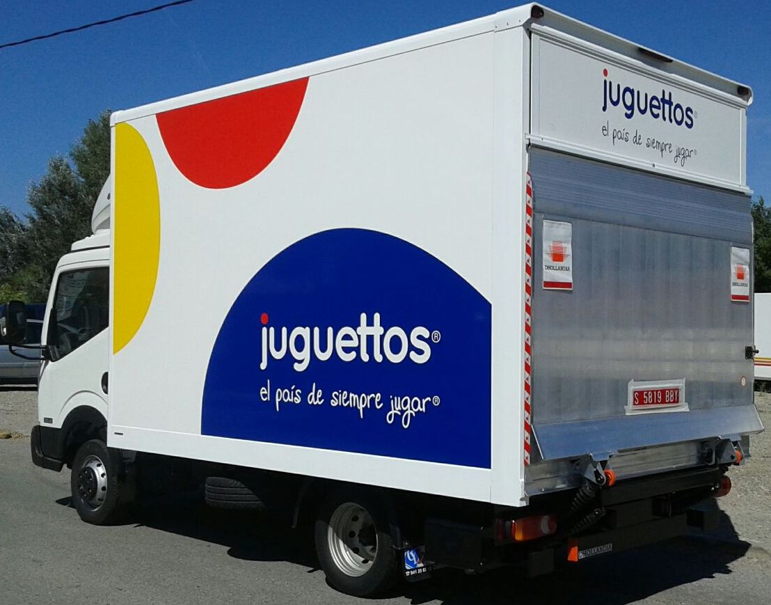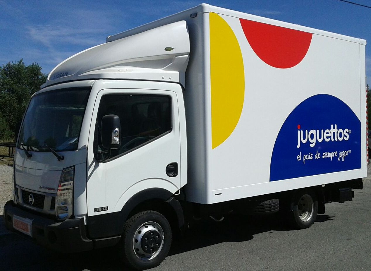 Hacemos entrega de un carrozado tipo furgón dotado de plataforma elevadora trasera Dhollandia, sobre Nissan NT400 Cabstar de 3.5 toneladas. El vehículo se destinará a las labores logísticas y de reparto de mercancías de la prestigiosa cadena de tiendas especializadas Juguettos.