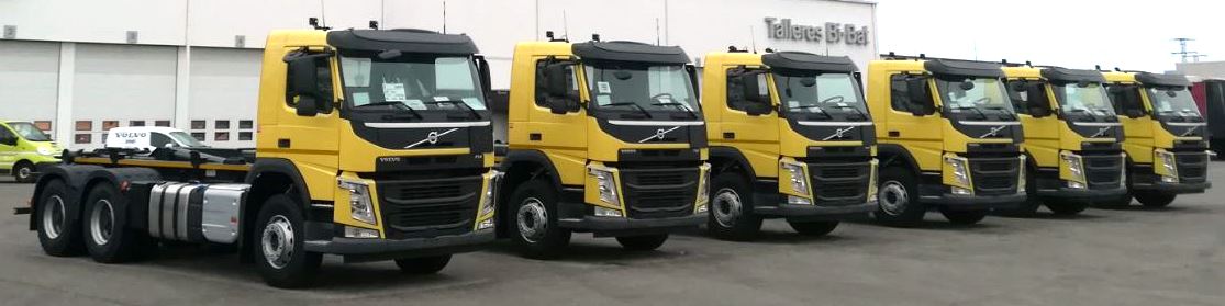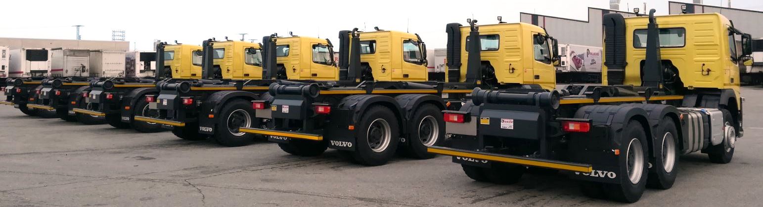 Realizamos la entrega de una flotilla compuesta por 6 unidades de Volvos FM64R dotados de equipos portacontenedores de gancho de 25t de capacidad. Estos vehículos prestarán sus servicios en una importante empresa de servicios medioambientales del norte de España.
