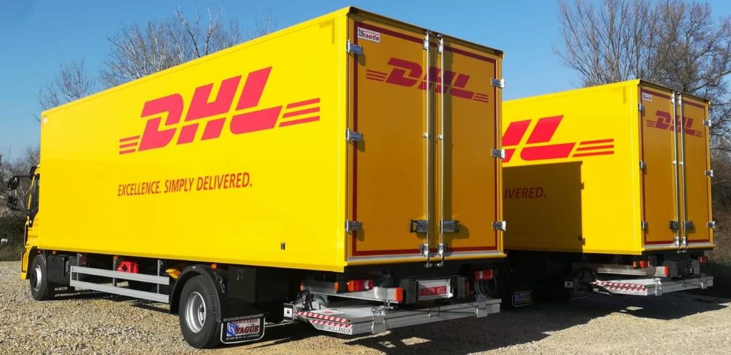 Realizamos la entrega de dos Iveco Eurocargo ML160E25 de 16t de PMA, a los que hemos dotado de sendas carrocerías tipo furgón y plataformas elevadoras retráctiles Dhollandia, de 1500kg de capacidad. Prestarán sus servicios en una importante empresa de distribución internacional.
